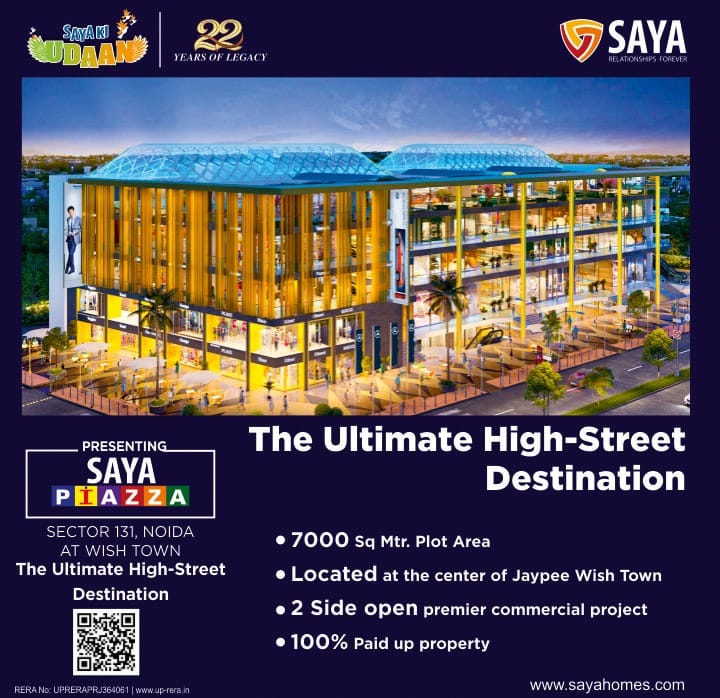 SAYA PIAZZA- The wish Town come alive. The superhit idea of shopping in sector 131 on Noida Expressway. Being the one and only exclusive, organized plaza in the vicinity. SAYA PIAZZA is turning a new page in retail therapy and entertainment for 50,000 families in the catchment area which is estimated to be around 2 lakh footfalls.